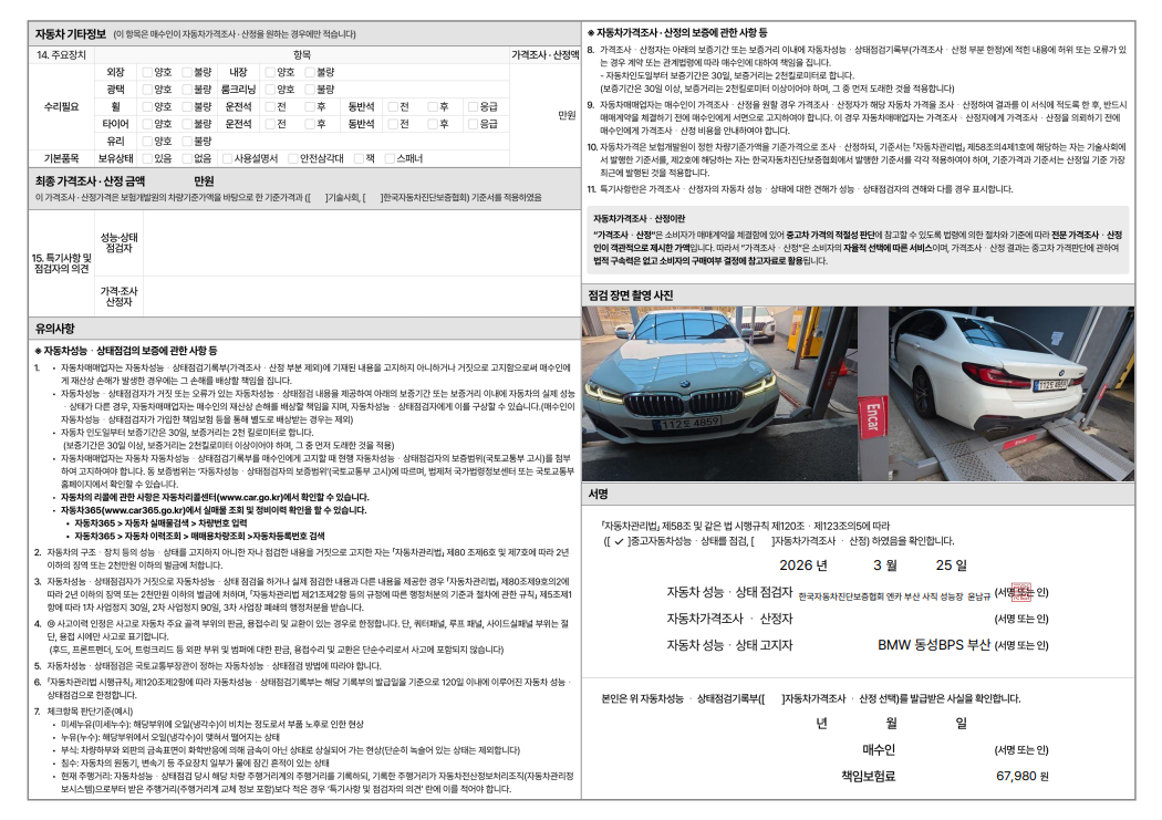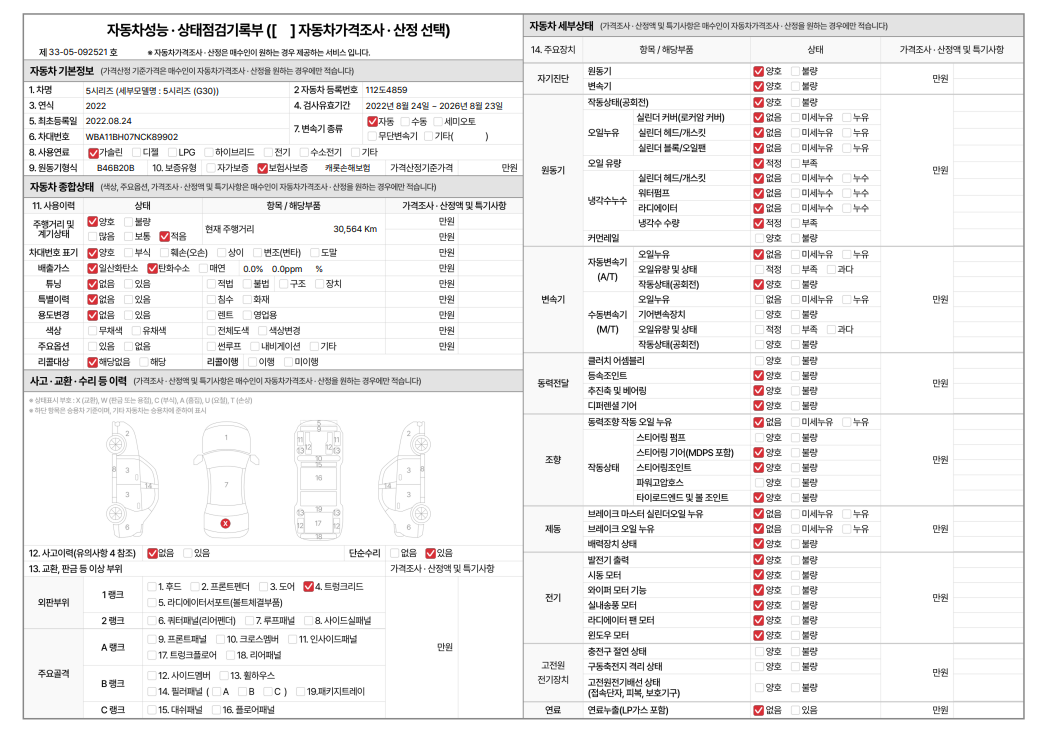 중고자동차 성능 · 상태 점검기록부