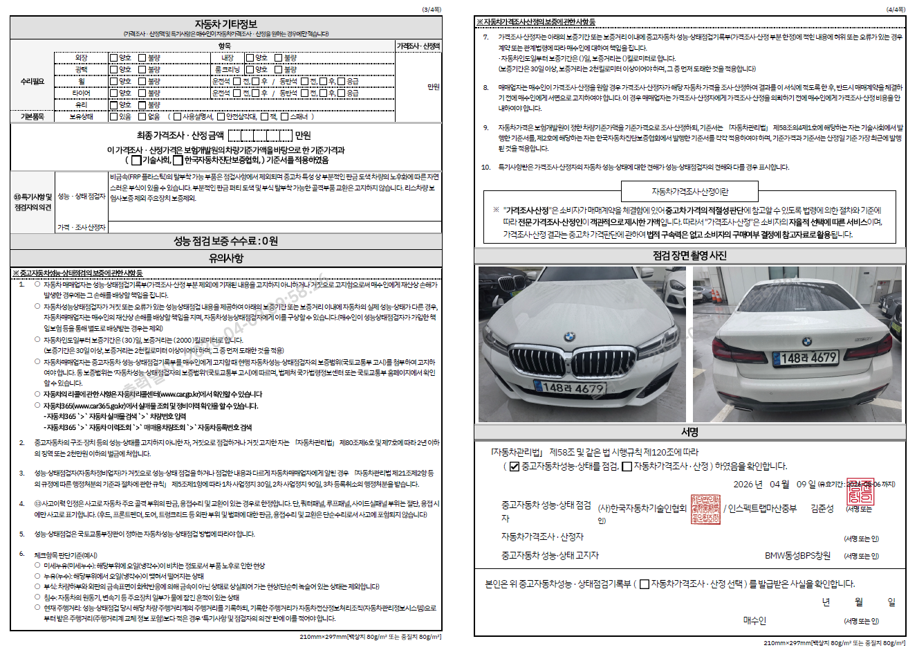 중고자동차 성능 · 상태 점검기록부