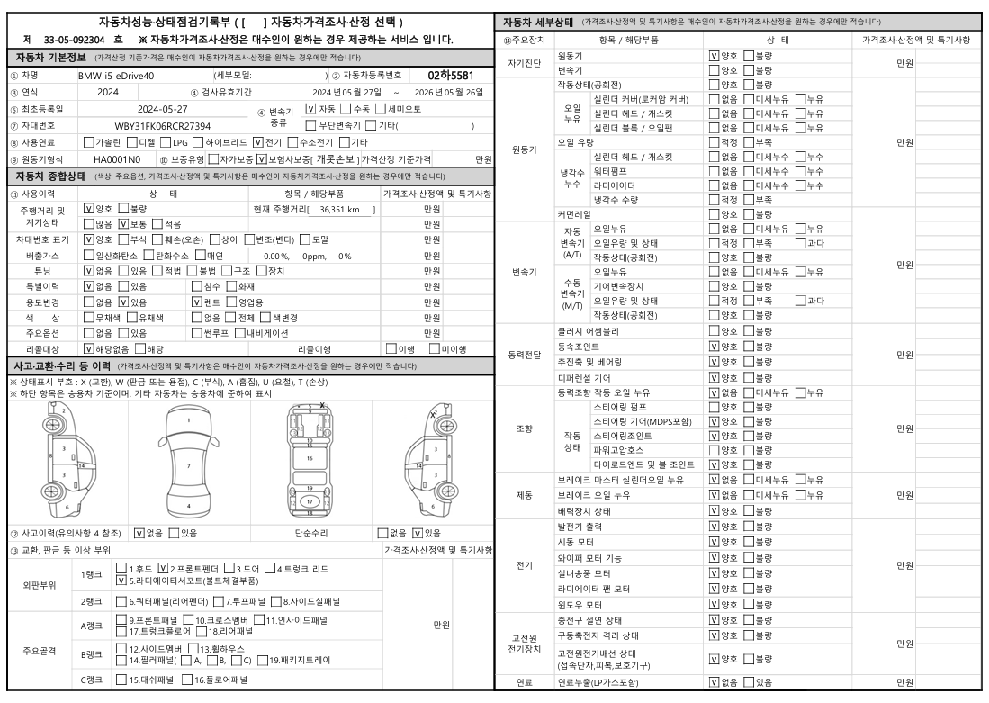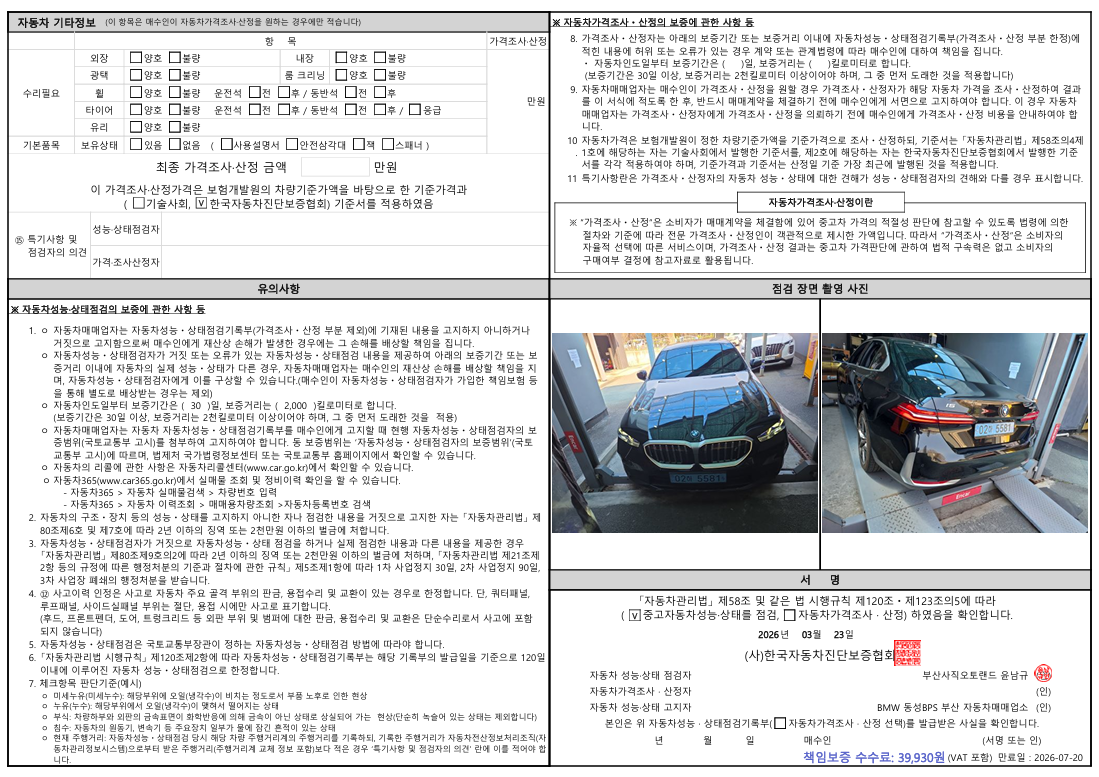 중고자동차 성능 · 상태 점검기록부