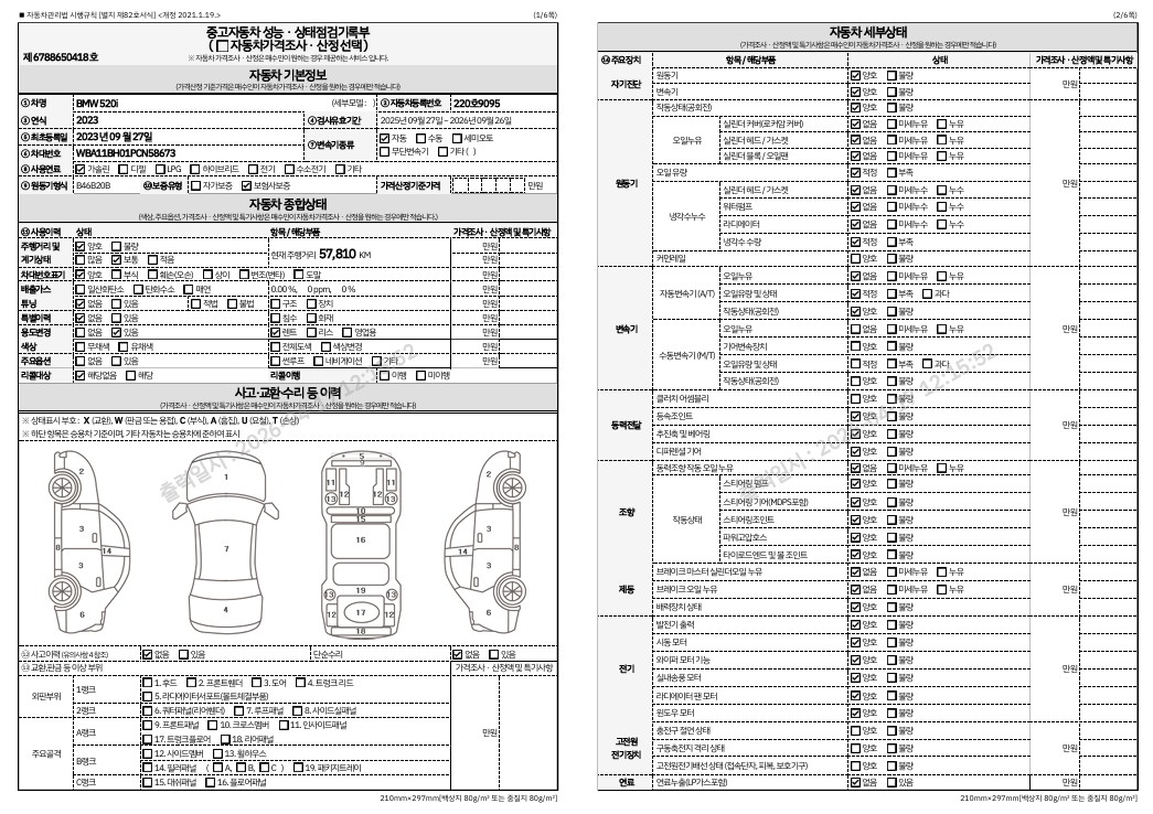 중고자동차 성능 · 상태 점검기록부