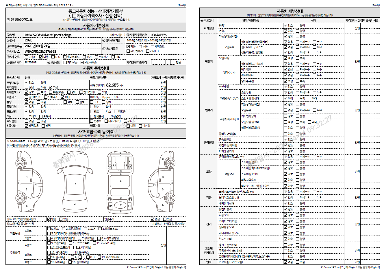 중고자동차 성능 · 상태 점검기록부